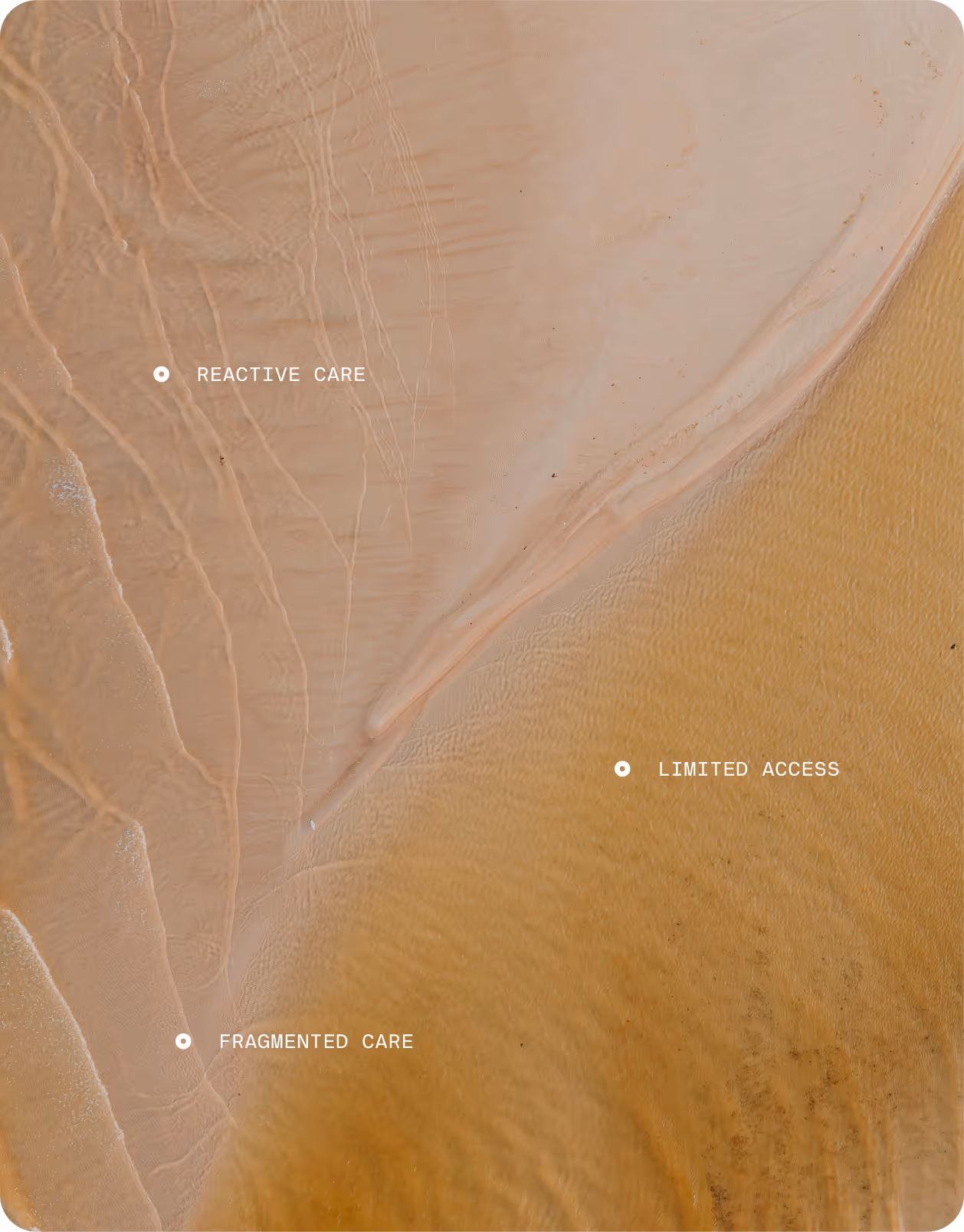 Healthcare is siloed across generalists, specialists, and wellness perks - leaving individuals without a comprehensive, connected view of their overall health.
